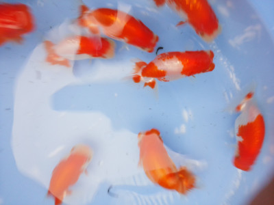真ん中にいるのが、艶藤の写真となっているランチュウです。