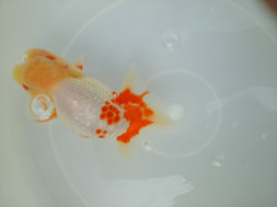 この時期のランチュウ飼育で10㎝を超えてくるとその魚持っている姿(DNA)が見え始めます。さらに12㎝になるとほぼ、その姿(DNA)が出ます。さらにボディバランスを崩さずに14cmに持っていくにはDNAと飼育方法が重要です。