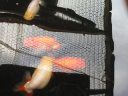 藤本氏のランチュウは、藤本氏の系統(艶藤系統)を飼育していただいている人たちだけが見ています。今回はほんの一部のランチュウの写真を掲載させていただきます。