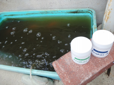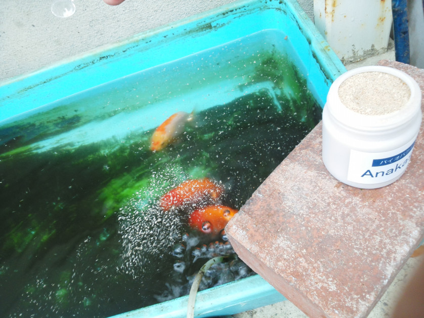 その中の1つに、如何に水の中に酸素を入れてあげられるか、とても重要です。コケの掃除の後、池への水入れの際、できるだけ泡立てるようにします。そうすると池の水の酸素量が十分に保たれます。