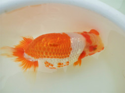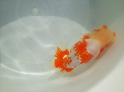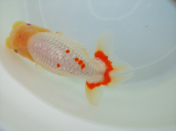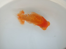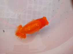この時期のランチュウ飼育で10㎝を超えてくるとその魚持っている姿(DNA)が見え始めます。さらに12㎝になるとほぼ、その姿(DNA)が出ます。さらにボディバランスを崩さずに14cmに持っていくにはDNAと飼育方法が重要です。