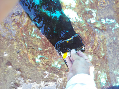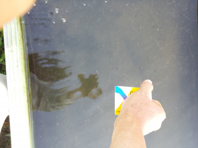ただ、コケや藻が多すぎても良くないので、掃除を行います。掃除の方法はプラスチック製カードをを用いて表面を削るように取ります。そうすると水を少しでも持たすことができます。